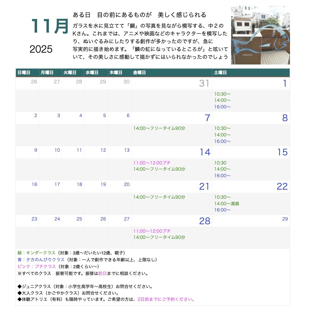 *キンダーD(第2、4土曜日14:00-15:30):11月8日、22日